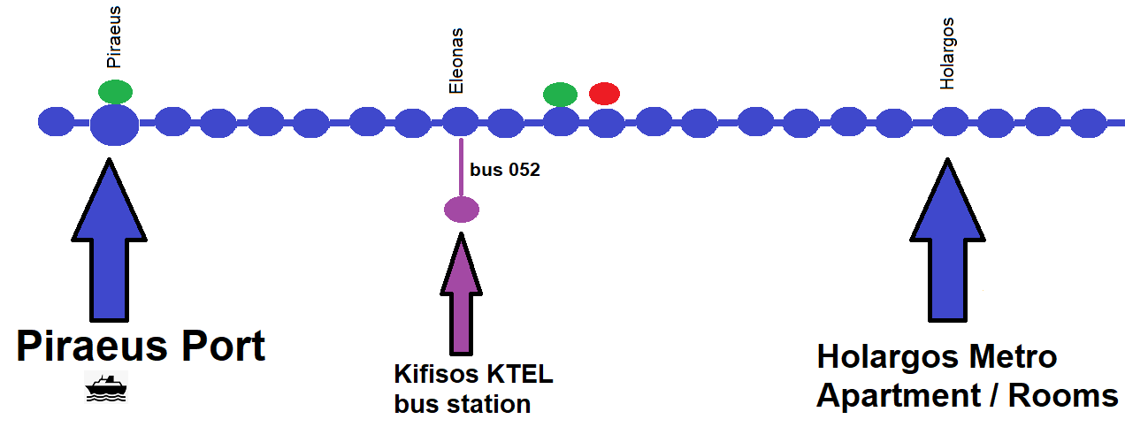 Its very easy to travel between the main bus station in Athens called Kifisos KTEL and my apartment. You just have to go to Eleonas metro station (blue line). From there bus #052 connects metro station with Kifisos KTEL bus station. Bus #052 is a circle line with only 2 stops. Eleonas Metro station and Kifisos KTEL bus station.